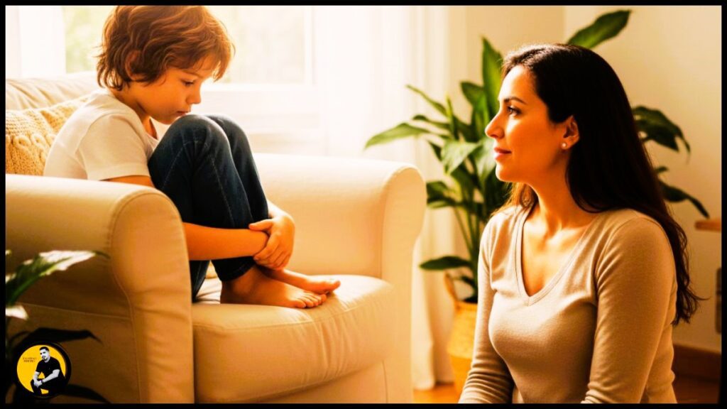 - Abaixe-se: Faça contato visual, garantindo que a criança sinta que você está com ela, não contra ela.